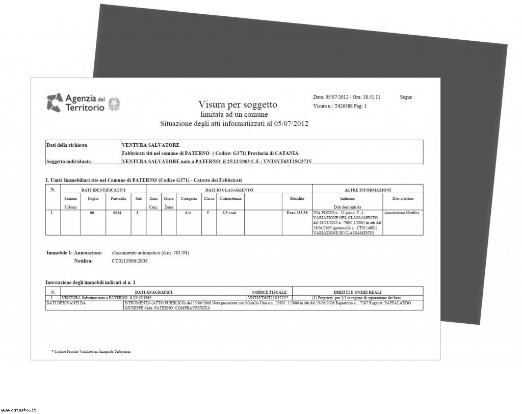 Vartiazione indirizzo in visura catastale
