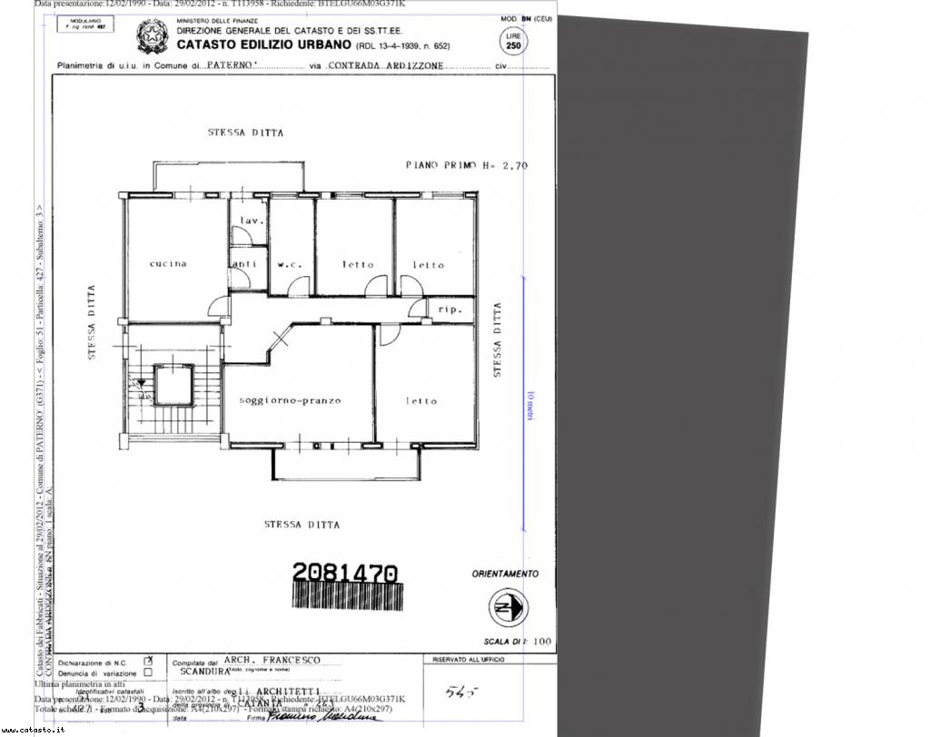 Planimetria Catastale Ufficiale di unità immobiliare censita al catasto fabbricati,