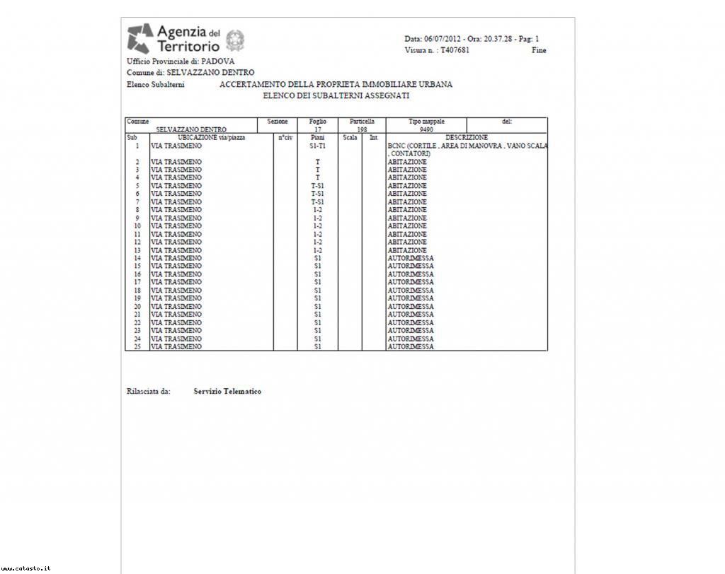 Nei casi in cui non ci sia nessun elaborato meccanizzato per la particella richiesta, verrà spedito un estratto di mappa ed elenco del subalterni.