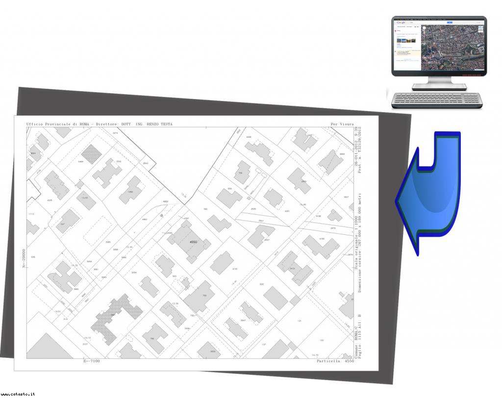 Questo servizio vi permetterà di ottenere un estratto di mappa catastale di una zona rintracciata tramite Google Maps.