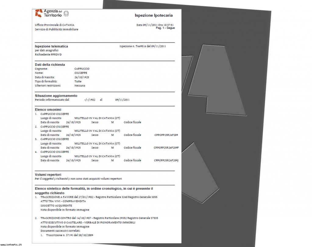 Costituisce la prima parte di una Ispezione Ipotecaria,