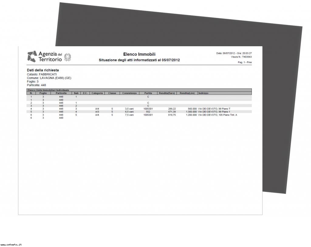 Elenco fabbricato al catasto