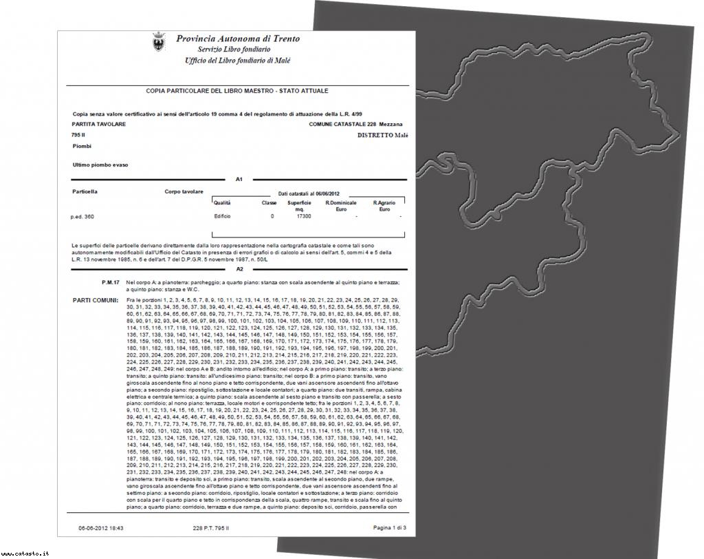 (€ 3,00 ogni interrogazione) presso gli sportelli del catasto tavolare dell'Agenzia